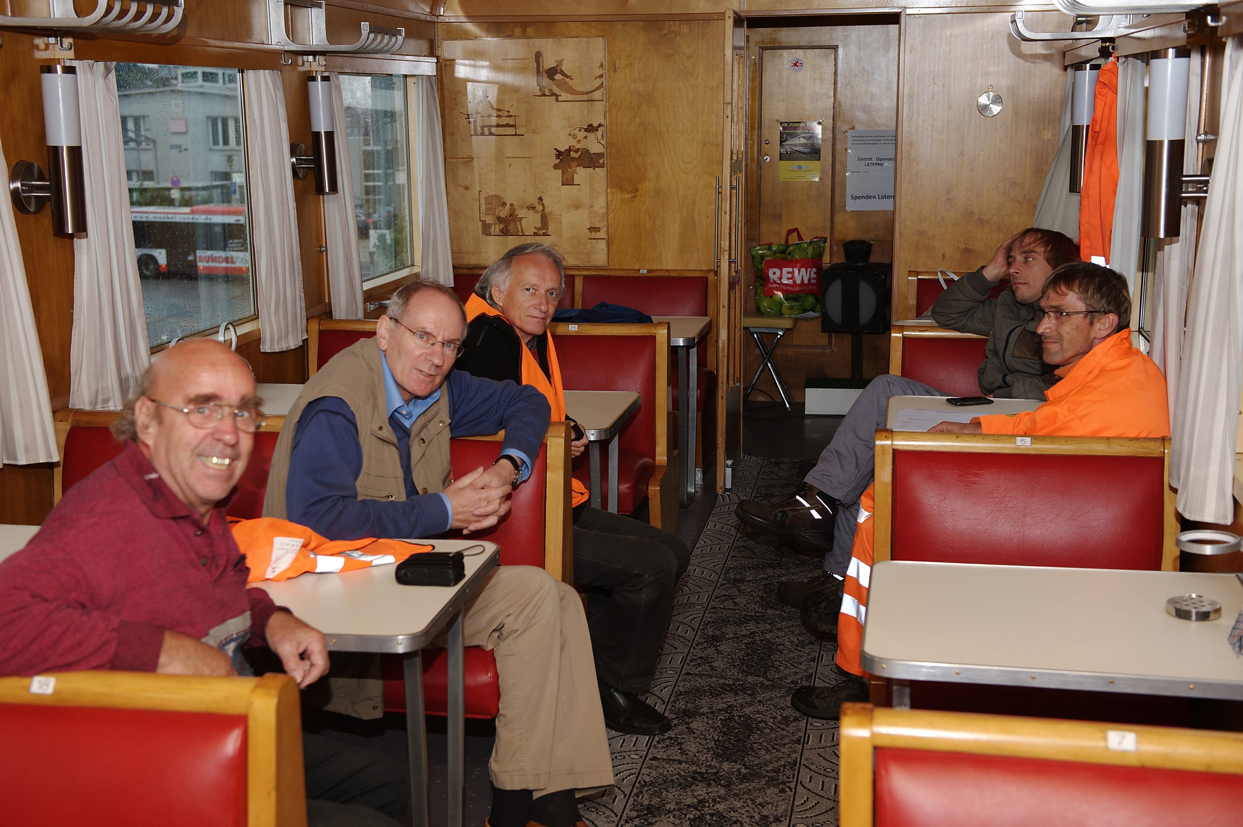 Überhaupt – das Zeppelin-Museum. Um es kurz und bündig zu sagen: Einen besseren Gastgeber konnten Triebwagen und Betreuungsmannschaft sich nicht wünschen. Die Museumsmitarbeiterinnen für die Öffentlichkeits- und Pressearbeit sorgten dafür, dass durch Anfangs- und Abschiedspressekonferenzen der Triebwagenbesuch ein großartiges mediales Echo fand. Eine schon freundschaftlich zu nennende Hilfsbereitschaft der Museumsmitarbeiterinnen und -Mitarbeiter half, auftauchende Probleme unbürokratisch und wirkungsvoll aus der Welt zu schaffen. Stellvertretend für alle soll hier ausdrücklich die souverän-gelassene und außerordentlich liebenswürdige Art des Leiters der Abteilung Zeppelin, Jürgen Bleibler, gewürdigt werden. Dass in einer derartigen Atmosphäre des Aufeinanderzugehens auch jede Menge für den Förderverein hochwichtiger Kontakte zu Personen und Institutionen für die weitere Arbeit zustande kamen, verwundert wohl nicht. Dabei rückte auch die Tatsache ins Bewusstsein, dass von den SVT-Serienbauarten der Reichsbahn, HAMBURG, LEIPZIG und KÖLN, nur noch je ein komplettes Fahrzeug die Zeiten überdauert hat. Im Falle der 1937/1938 von Linke-Hoffmann in Breslau gebauten 14 dreiteiligen Einheiten der Bauart KÖLN existieren außer dem SVT 137 856 allerdings noch ein End- und ein Mittelwagen in Konstanz als Clubdomizil, der dazu gehörende zweite Endwagen dient in Travemünde dem gleichen Zweck, und im Werksmuseum von Alstom in Salzgitter befinden sich noch zwei weitere Endwagen.