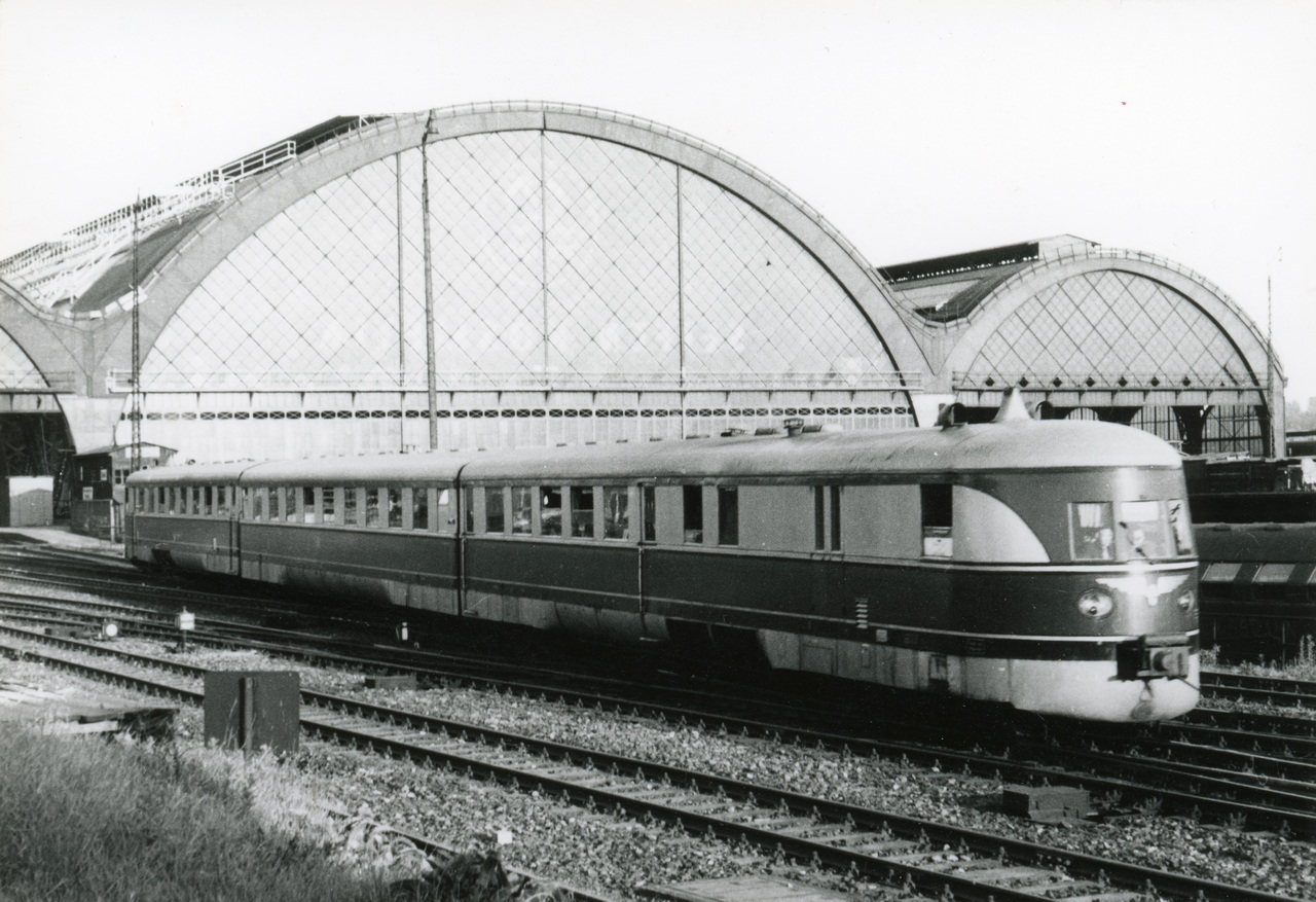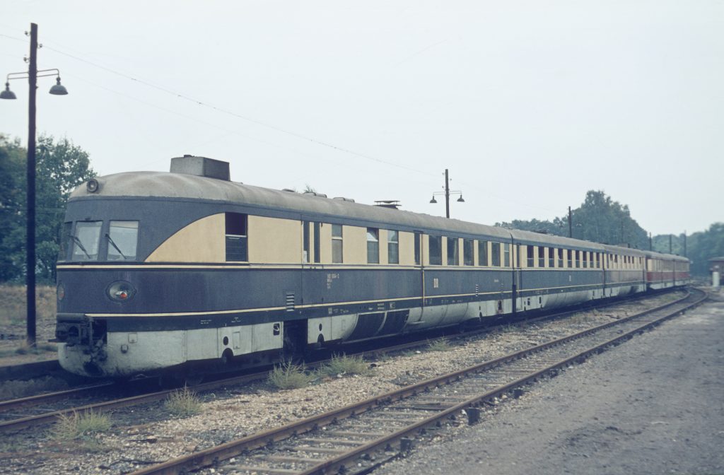 Ein SVT 137 der DDR-Reichsbahn als Interzonenzug Berlin – Hamburg im Grenzbahnhof Büchen. (02.03.1950) Foto: Walter Hollnagel